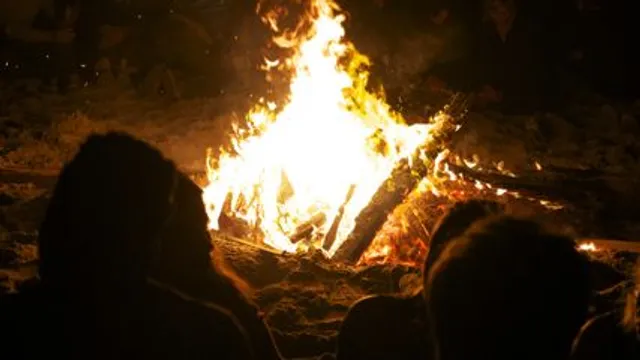 Het strand is de master bedroom van Great Wide Open: it is wherry thé magie happend. Een van de hoogtepunten van de eerste volledige dag: het ploegen door het rulle duinzand, met als belofte een oranje gloed aan de andere kant. Op het strand zijn zeker vier vuren, met groepen mensen er omheen.