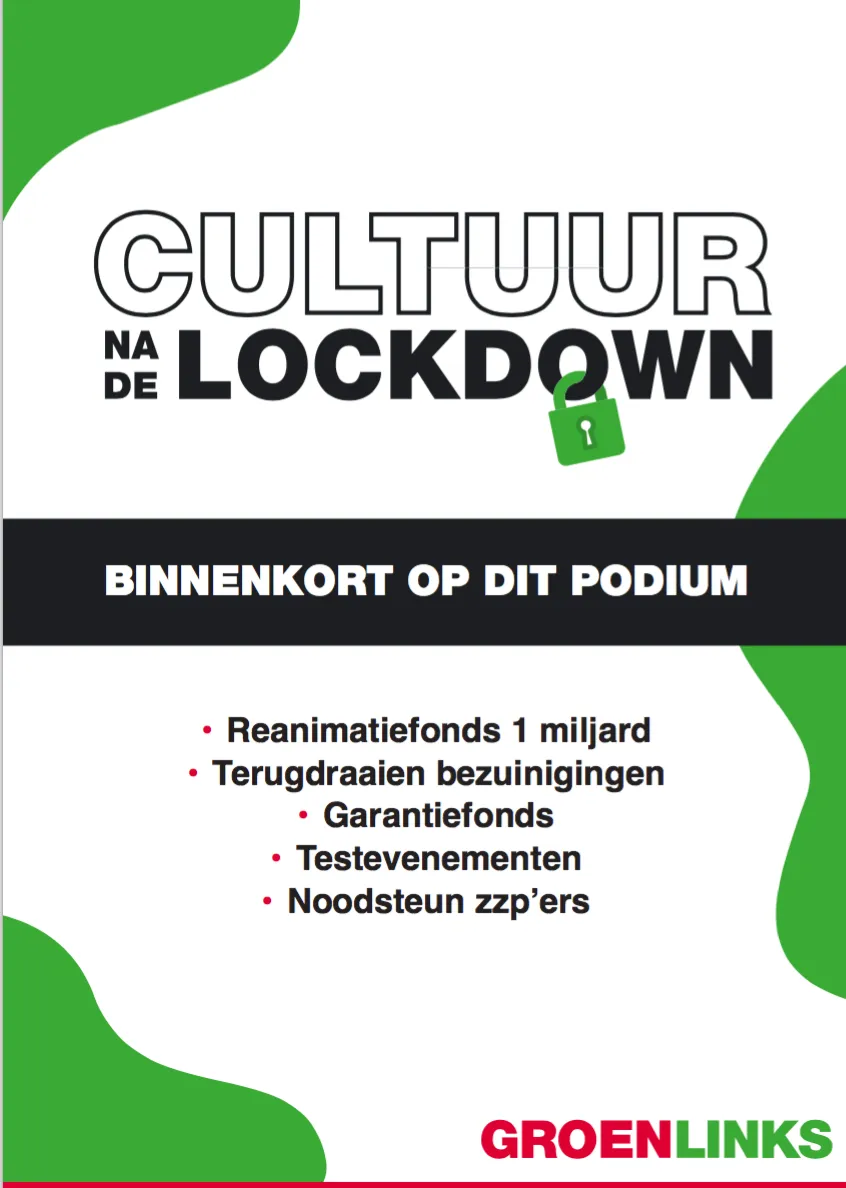Perspectief bieden. Dat wil oppositiepartij GroenLinks aan de culturele sector. Om dat te doen legt de partij op de ESNS conferentie een stevige hand kaarten op tafel: er moet een ‘reanimatiefonds’ komen van een miljard euro, het kabinet moet zo snel mogelijk instemmen met een garantiefonds voor evenementen en de 200 miljoen per jaar die Halbe Zijlstra een aantal kabinetten geleden bezuinigde moet terug. Kamerlid Niels van den Berge: ‘Het is een wezenlijk andere manier van investeren dan de noodpakketten. We moeten nu vooruit kijken.’