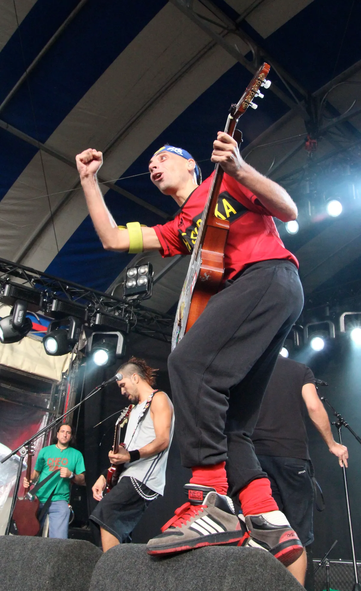 Twee Argentijnse broers en twee Colombianen vormden met nog een stel (illegale) Latijnsamerikaanse immigranten tien jaar terug de band Che Sudaka in Barcelona. Grote invloeden zijn hun leermeester Manu Chao (en ook het steviger, meer punky werk van diens oude band Mano Negra) en andere bevriende/verwante bands als Amparanoia en Ojos de Brujo. De sound is typerend voor de culturele, muzikale smeltkroes die de Catalaanse hoofdstad al decennia is: Latijnse stijlen als cumbia, rumba en reggae, met punk en rock. Er zijn een paar bandleden opgestapt, waaronder een jaar geleden de drummer en twee maanden terug de bassist. Ergo: geen ritmesectie. En live komen die felle bekkens en drumritmes dus uit een kastje. Maar, zo verklapt iemand, die zijn wel door de ritmesectie van Manu Chao ingespeeld. Niettemin zijn ze zoekende.