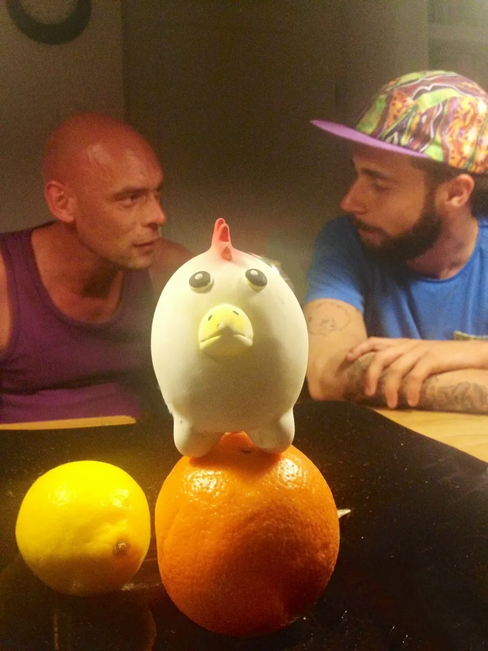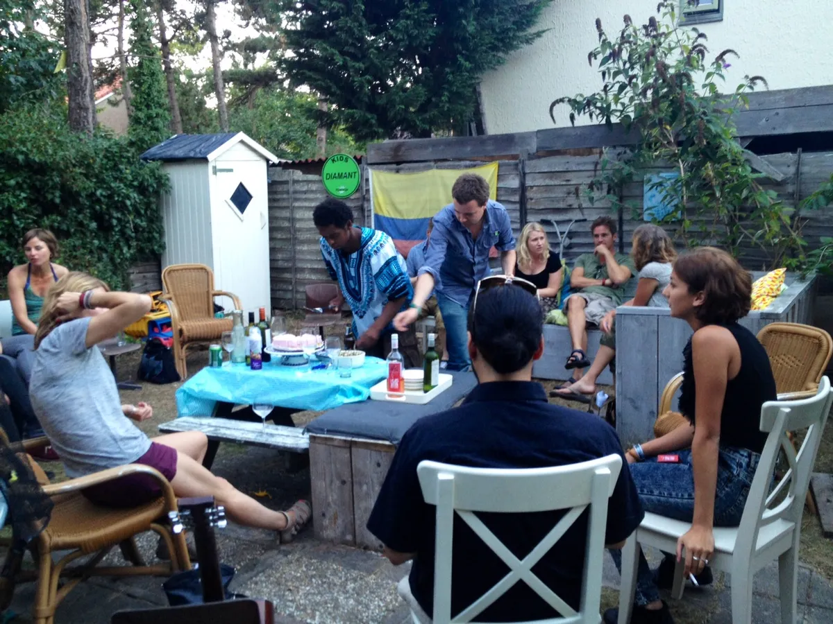 ITGWO organiseert net voor het festival de zogenaamde Tussendeurtjes, met kleine optredens en gesprekken over de toekomst van Nederland in Vlielandse huiskamers. Typhoon en Dries gingen zo op bezoek en A.R.T. en Rico ook. Rico maakte deze typerende foto van Ty. "Dat is echt wat voor hem; hij komt net binnen en staat weer voor iedereen taart te snijden. Het gesprek ging bij ons over solidariteit, bij Typhoon over 'broodfondsen', dat zijn potjes voor ZZP'ers waar een man of vijftig geld in stoppen en als er eentje ziek wordt, krijgt die geld uit het potje. Wij mochten het muzikale deel invullen en de bewoners nodigen verder zo'n tien mensen uit waarvoor ze koken. Zo krijg je ook een idee hoe mensen op Vlieland leven."