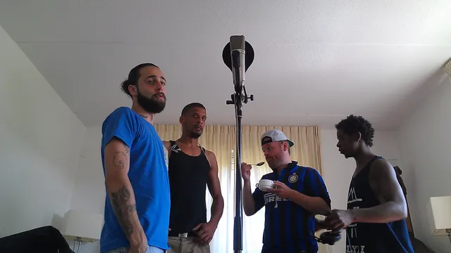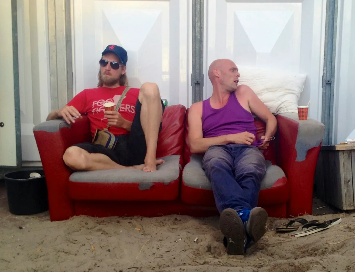 Rico legt uit wat we zien: "Sebas van Olst en Dries in chill-modus in het restaurant bij de Bolder. Sebas is de bassist van Typhoon en band. Dries en Bas kennen elkaar al heel lang, zijn goede vrienden en spelen al 15 jaar samen. Dat samenspel; zonder veel voorbereiding een hele toffe show in elkaar zetten, dat was de kracht van de spontane show van Freez. Die was heel goed bezocht en er hing een goede sfeer."