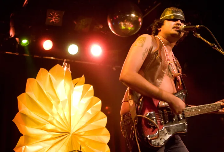 We zitten vijf minuten backstage in het Patronaat en Arish Ahmad Khan heeft al verteld over twee arrestaties, poppers in dB's, absinth, Canada, Kassel, Berlijn en een sabbatical in een Koreaans vrouwenklooster, omdat hij gek was geworden van het vele spelen met King Khan & The Shrines, The Black Lips en nog een stuk of drie bands. En dan moeten we het nog hebben over verkleedpartijen, het nieuwe album, live rituelen, Jay Reatards dood, paddenstoelen en andere trips. Misschien dat Into The Great Wide Open de grote Canadees-Indiase Duitser en zijn bonte band daarom 'veilig' in De Bolder heeft geprogrammeerd. Hij belooft een "gospelshow, een ritueel waar mensen komen om hun ziel te zuiveren" en waar "stront in goud verandert".