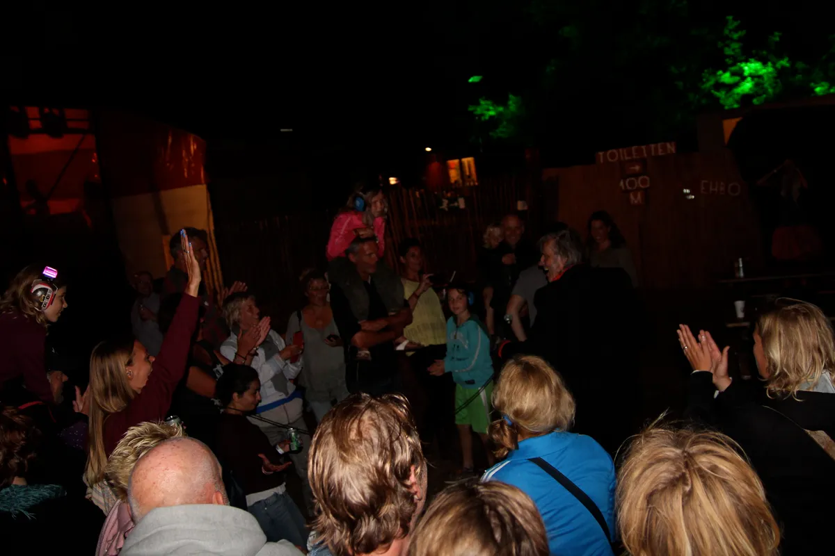 Massaal opgekomen, tweederde van het veld vullend, maar vooral op de eerste rijen meerockend.