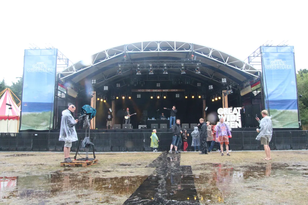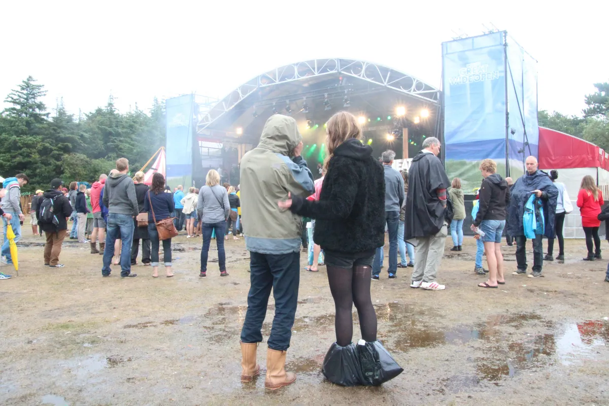 Van vijf man naar een paar honderd; natuurlijk speelt het mee dat het de hele ochtend al regent. Dan ga je niet snel naar een potje reggae om kwart voor twaalf. Als Rico begint, zijn het er inmiddels zo'n vijftig, maar de stemming is relaxed en lacherig. Het is net gestopt met regenen, medewerkers prikken met stokken in het veld voor de drainage, iemand brengt een fles roze bubbels met twee glazen en Rico schenkt die weer aan een paar bezoekers. Drie kwartier verder, het is niet alleen droog gebleven maar we zien zelfs een flets zonnetje, staat het voorste deel van het veld toch vol en te swingen. Goede vibes over en weer hier.