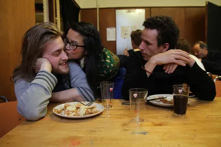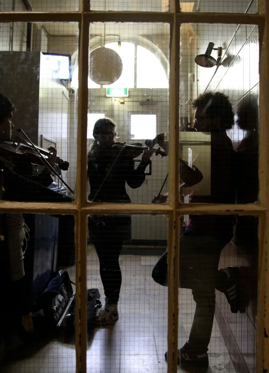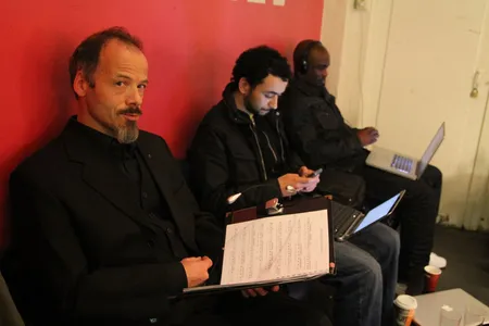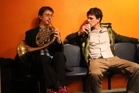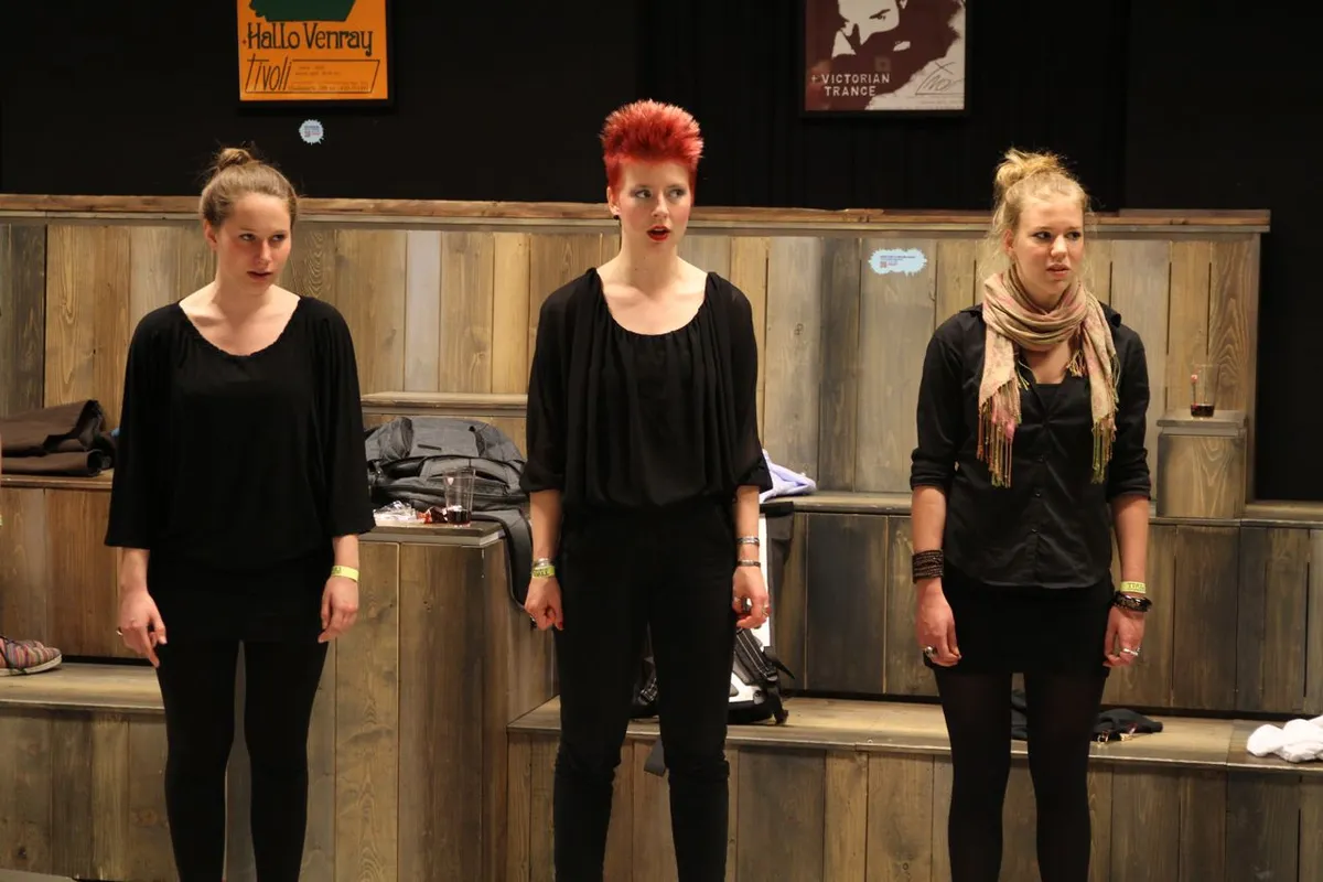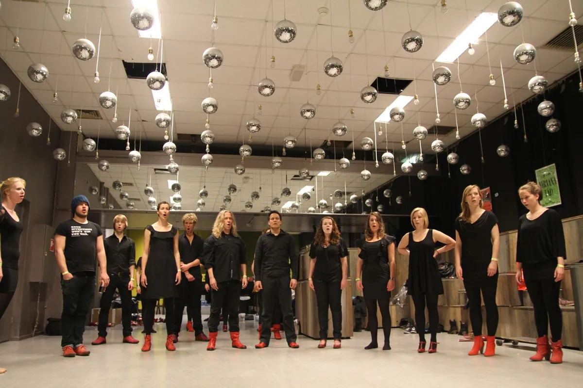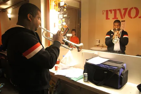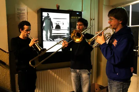 In de uren daarvoor is Tivoli een mierennest van muzikanten. Ze hangen rond, beluisteren met oordopjes nog een keer hun partijen, verdiepen zich in de bladmuziek, spelen nog even een game. Vader Benders installeert de printer van het mobiele kantoor van Kytopia, terwijl moeder Benders instructies geeft aan het koor in de Spiegelzaal. In het halletje zit drummer Bram Hakkens op zijn eigen knieën te tikken, naast de sigarettenautomaat speelt Colin Benders zijn trompet warm, samen met hoornist Morris Kliphuis.