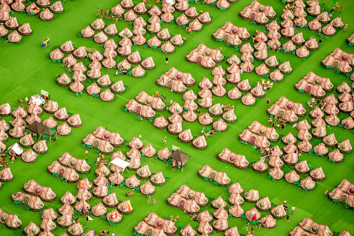 En dus probeert de organisatie in allerlei branches inspiratie op te doen. Innovatieve food concepts in wereldsteden, interessante nieuwe theaterproducties, maar ook hospitality in hotels onderzoeken ze constant met het hele team. Maar ook: pretparken. Michiel Beers noemt onze eigen Efteling als voorbeeld, een plek die niet alleen draait om achtbanen, maar waar ook de prullenbakken een attractie zijn. Zo ver wil Tomorrowland ook gaan. Geen enkele kabel mag er te zien zijn, geen lelijk hek in zicht. ‘We hebben geluk dat we van de provincie Antwerpen, eigenaar van het terrein, mogen investeren in het terrein. We hebben een langlopend contact. Dat gaat allemaal in samenspraak met een landschapsarchitect. Als je ziet wat we de afgelopen jaren allemaal verbeterd hebben: stroom onder de grond, drainage voor het gras, fiberkabels, wateraansluitingen. We proberen te werken aan een vaste infrastructuur. Dat is ook de enige manier om in zes weken zo’n festival op te bouwen.’