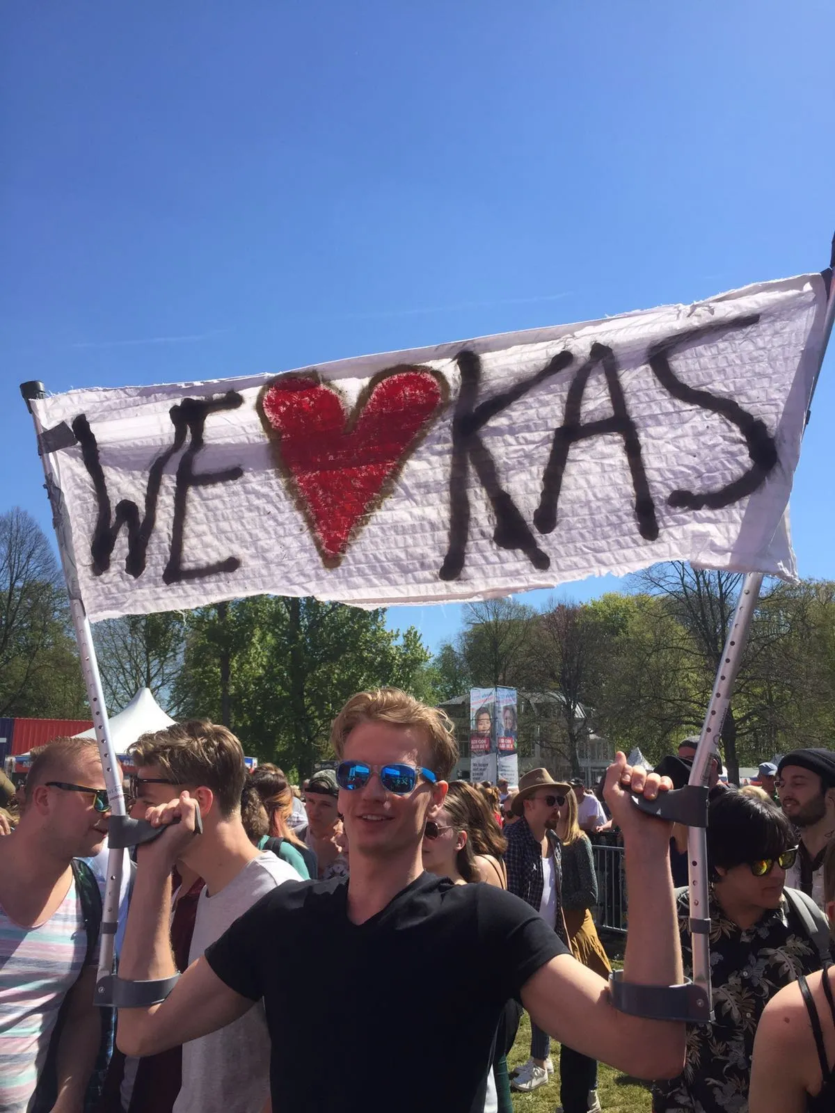 De fanbase van Kas, de gitarist van Hamming, is dankzij spandoeken ook duidelijk aanwezig. Waarop Lucas zegt "Hé Kas, dat wordt neuken vanavond. Het volggende nummer gaat over vrijheid. In de slaapkamer."