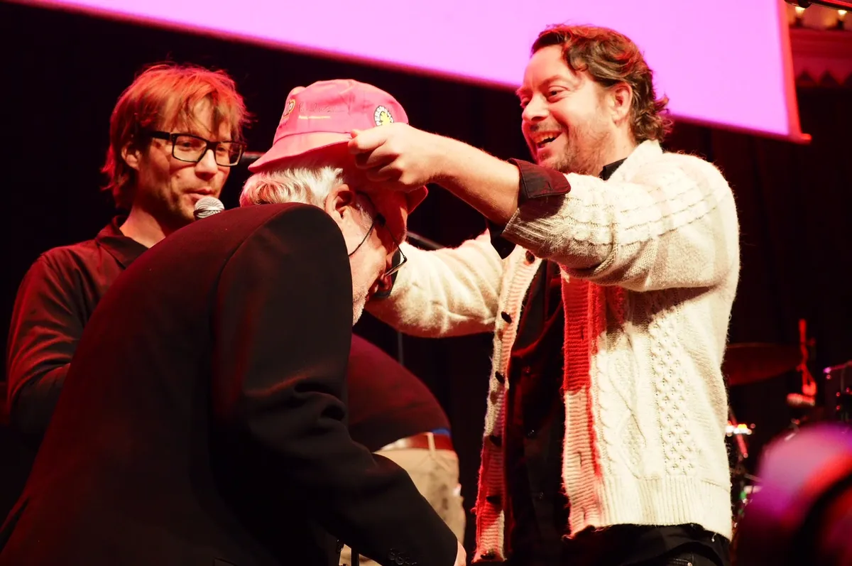 12:42: Jan Smeets ontvangt het Pinkpophoedje van Amnesty International