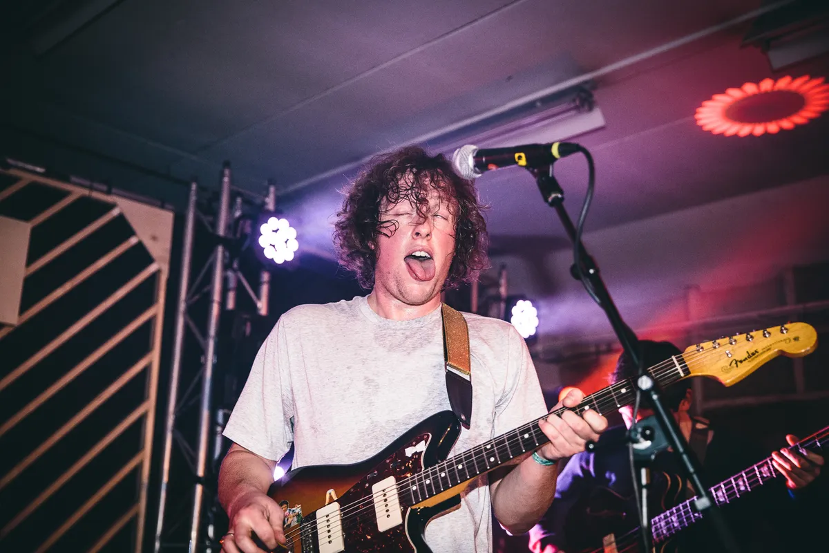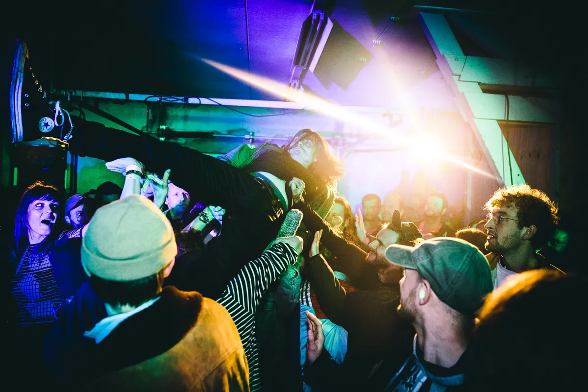 De fans dragen voornamelijk bordeaux- en okerkleuren, grote Trashertruien of afgetrapte skatesneakers. ‘Een lelijk publiek’, zegt frontman Jeroen Reek die zichzelf in een slobbertrui, skinny jeans en vieze schoenen heeft gehesen. De gevarenzone voor het podium neemt zo’n dertig vierkante meter in beslag. Fans houden een surfplank omhoog waar zij en Reek op gaan staan om letterlijk te crowdsurfen. De heren van Iguana Death Cult zien deze show, op dit festival, als het beste wat ze tot nu toe hebben weggezet. ‘Wat hier gebeurde, gebeurt straks bij de releaseshow van de nieuwe plaat The First Stirrings of Hideous Insect Life in Pier 15 ook,’ zegt gitarist Tobias Opschoor. ‘Dit is onze thuishaven en hier zijn de mensen gestoord.’ Om te kijken of hun albumreleaseshow bij hetzelfde skatepark ook als een ideaal optreden kan worden gezien, stellen we een checklist van drie punten samen.