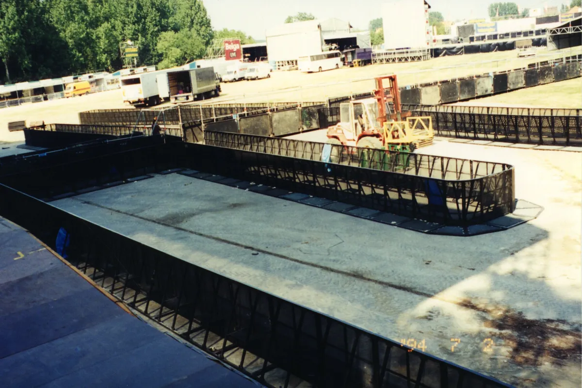 Natuurlijk vond hij er uiteindelijk wat op. Geïnspireerd door een vergelijkbaar maar kwalitatief inferieur systeem in Amerika ging hij met een kennis aan de tekentafel zitten om het hekje te ontwerpen zoals we dat nu kennen: een simpel aan elkaar te monteren hek van 1.20 meter breed dat modder, water en bollingen in het terrein kan overwinnen en niet zomaar kan omvallen bij grote druk, met een trappetje waar de security op kan gaan staan en aan de andere kant ook een vloertje waar publiek op kan gaan staan. Tegelijkertijd besloot Mulder om met die dranghekken vakken in het veld te gaan bouwen waar maar een gecontroleerd aantal mensen naar binnen kon. ‘Daardoor wordt de druk natuurlijk ook veel minder hoog, als je niet in het voorste vak staat heeft het geen zin om jezelf naar voren te duwen, en de security kan door de vrijgekomen paden tussen de vakken lopen.'