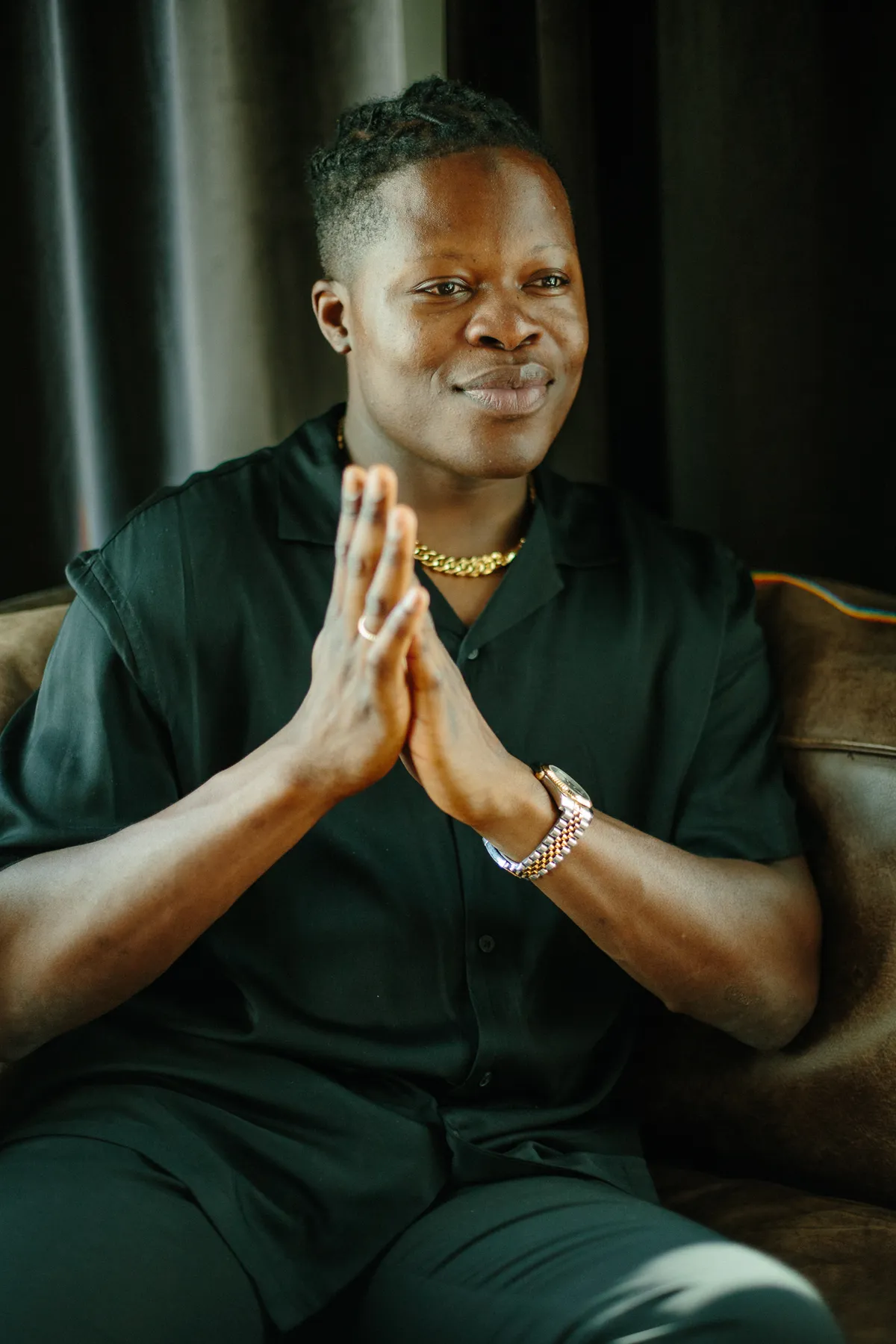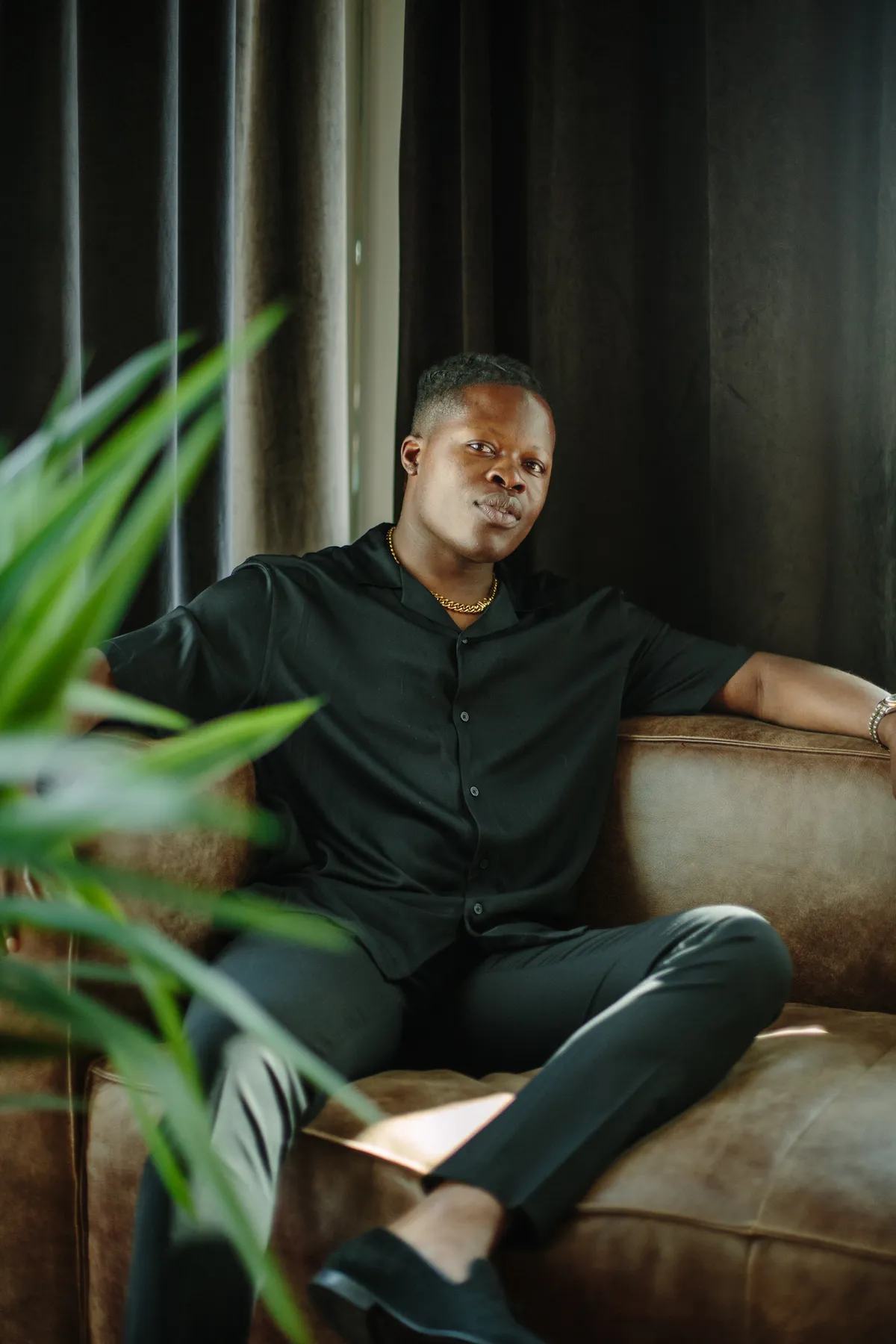 Want ja, op die stoel voelde hij opeens dat die muziek óók over hem ging, een jongen die tot dan toe vooral een disconnect voelde met zijn Nigeriaans-Congolese roots. ‘Fela Kuti was een Afrikanist: black power en emancipatie. Hij wilde de Westerse beeldvorming rond Afrika ontkrachten: dat het onderontwikkeld is, armoedig en primitief. Daarmee was ik óók opgegroeid, zo pijnlijk om te zeggen. Die zomer ben ik dat Afrikaanse deel in mij juist meer gaan waarderen en uitdragen. Voor het eerst in mijn leven voelde ik me op mijn gemak bij Afrikaan zijn.’