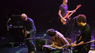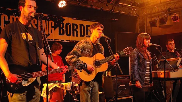 Het was al bekend. Hij praat niet graag, Thijs Kuijken. Hij gebruikt het liefst zo min mogelijk woorden om iets te vertellen. Het publiek houdt zijn adem in en heeft tijdens de eerste drie nummers in spanning gevolgd hoe het Utrechtse vijftal zich tijdens haar eerste Crossing Border staande zal houden. Dan maakt Thijs Kuijken een grap. "Ik hoop dat jullie een beetje wakker kunnen blijven." Een vlaag van opluchting gaat door de zaal. De schuchtere Kuijken is zeker nog geen podiumbeest, maar hij is wel gegroeid in zijn rol.