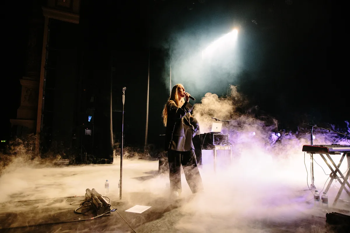 Geen vleugje onzekerheid, geen greintje zenuwen. Nee, bij S10 lijkt het als vanzelf te gaan. Rook kruipt over het podium tussen haar benen door, naar beneden het publiek in. Het zorgt voor een ingetogen maar theatraal geheel. Dat belooft wat voor het songfestival. En die stem, die raakt je tot in je botten. Het tranentrekkende ‘Maak Me Wakker’ gaat door merg en been en de diepe bas van de track kruipt in de muren en onder je huid. De albumversie verbleekt erbij.