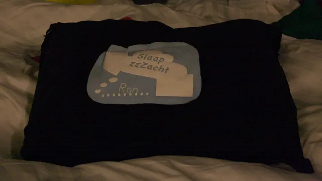 Binnen staat een vriendelijke jongen me op te wachten. "Ron? Welkom. Ik zal vannacht over je waken. Hier is je kussen." Op dat kussen is een vrolijk vilten minikussentje geplakt. "Er zit nog een cadeautje in, maar daar kom je vanzelf achter. Slaap zzzacht." Die drie z-tjes zijn daadwerkelijk hoorbaar.
