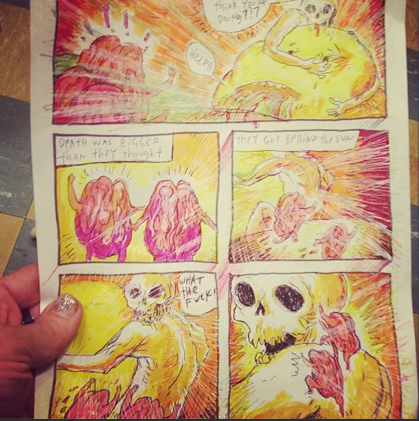 Verspreid over meerdere foto's zien we een cartoon, over de Dood die de Zon ontvoert. Zelf getekend?