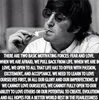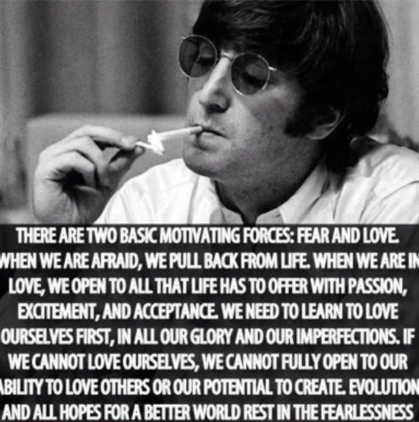 "Hij is belangrijk voor alle muziek. Maar de spreuk is interessant. Angst kan je leven echt totaal lamleggen, het verandert de manier waarop je naar de wereld kijkt. De wereld kan zich voor je sluiten als je bang bent. Precies zo kan verliefdheid alle koffers en deuren voor je openen. Het grappige is overigens dat we helemaal niet weten of het wel echt een quote van John Lennon is. Neem een foto van een haast mythologische figuur, zet er een radicale wijsheid onder, en iedereen gelooft het. Het maakt me eerlijk gezegd niet uit of Lennon het echt gezegd heeft of niet."