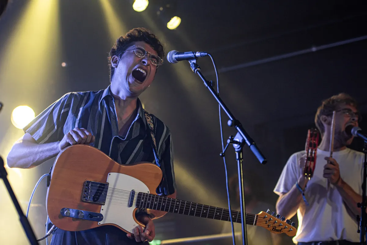 De bands die een zaal wél helemaal gek zouden kunnen maken lijken echter gedwarsboomd door hun openingspositie. Engelse postpunkers Squid, bijvoorbeeld. De frisse indieband die per nummer van bezetting lijkt te wisselen omschrijft zichzelf als de liefdesbaby van David Lynch en David Byrne. Zingende drummer Ollie Judge werkte veel te lang in een troosteloze platenzaak, waar de gekste, meest doordachte teksten uit voort zijn gekomen. Het gefrustreerde 'The Cleaner', vanuit het perspectief van de schoonmaker die constant aanwezig is maar niet aangesproken wordt, en 'Match Bet' in hetzelfde universum over een mentaal geretardeerde Sonic Youth-fan die de zaak telkens binnenloopt om over zijn obsessie te praten. Ook Zuid-Afrikaanse afrobeat-protestgroep BCUC heeft de volgende dag een taai karweitje aan het openen van het Sportveld. Hoewel ze de boel als een paardenmenners op staan op te jutten, het is voor het binnendruppelende publiek nog te vroeg.