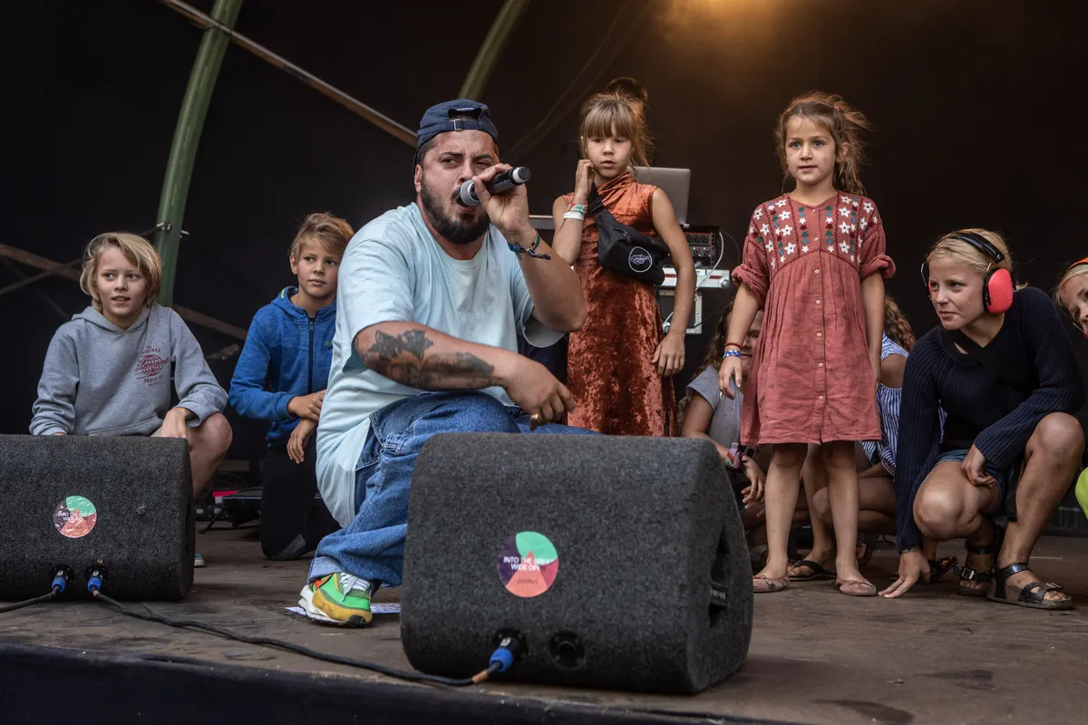 Het is al een poosje erg droog op Vlieland. Dat zorgt ervoor dat door de stofwolken de hele tijd ongemakkelijke zwarte pulkjes in je neus belanden. Er geldt ook een rookverbod binnen een straal van dertig meter rond natuurgebieden. Lees: overal waar het festival plaatsvindt. Een rookverbod past dan misschien niet zo goed bij hiphopconcerten in de open lucht, het past wel bij de familiesetting. Op de elfde editie van ITGWO zijn de gezelligste optredens wederom die waarbij de kinderen mee mogen doen.