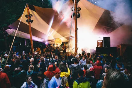 En wat begint die zaterdag hoopvol: de regenlaarzen staan in de modder, maar de koppies in de zon. De maffe chillhoekjes waar het bos mee doorspekt is zijn inmiddels opgedroogd. Plukjes mensen zitten op tweedehands sofa's tussen felgekleurde palletkunstwerken, dunne stralen zonlicht stromen door het bladerdek, drie aliens in gifgroene morphsuits lopen gezellig keuvelend over het bospad. Red Light Radio-bekende Will Oirson laat zich meeslepen in de sprookjesachtige sfeer, en opent zijn set met new age-meditatieklokken die overgaan in melodische midtempo housebeats. Even wakker worden. Het festivalterrein is nog opvallend rustig. De eerste zeepbellen vliegen door een langzaam grijzer wordende lucht.