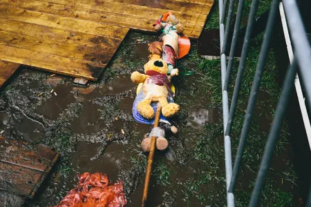 Alle podia van het festival zijn stil, behalve het kleine tentje midden in het zwembad. Daar blijft in de stromende regen een feestband met blazers dapper door spelen, zoals het strijkkwartet op de Titanic, maar dan met een hoempapaversie van 'Seven Nation Army'. Het publiek van Into The Woods is vastberaden om de storm te trotseren. Een massale regendans ontstaat. Een paar meter verderop staat Gandalf in een regenponcho.
