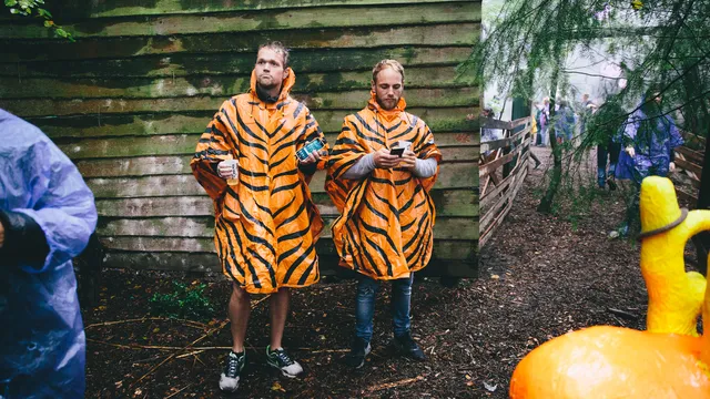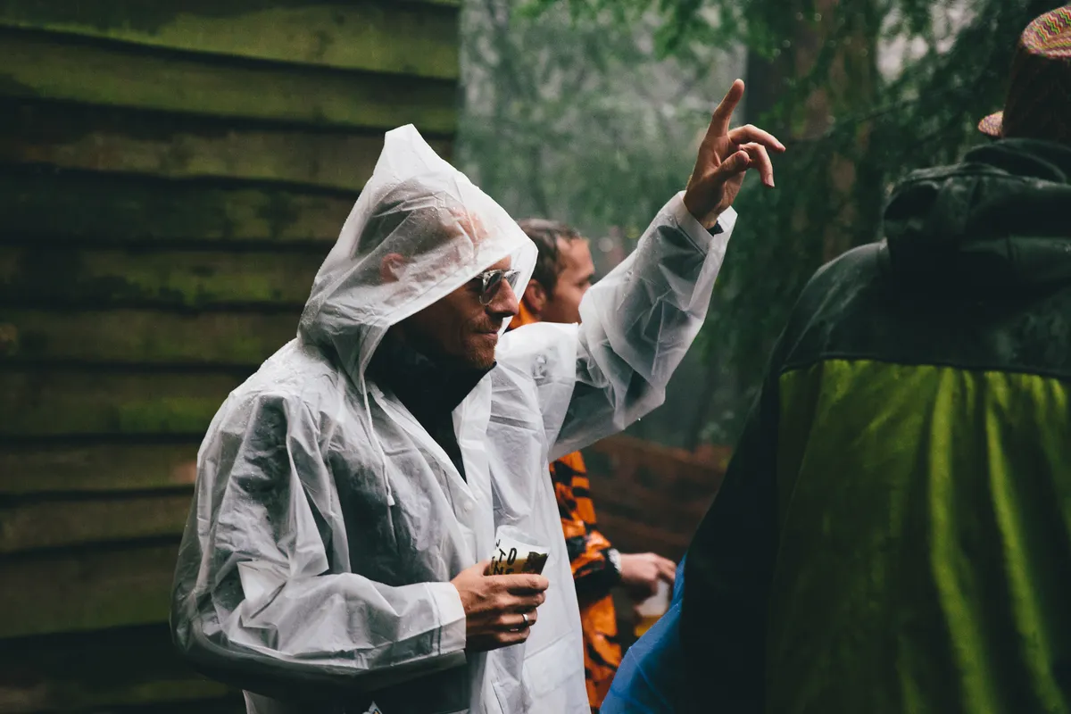Op vrijdag is het weercijfer 3, er valt non-stop regen en het is zo’n beetje de slechtste nazomerdag die je je kunt voorstellen. Wat doe je dan? Dan loop je gewoon in je duikpak met snorkel rond, dans je in je meest kleurrijke space-poncho of doe je gewoon een heel kort broekje aan. Hoe minder kleding, hoe minder er nat kan worden, toch? Ben je toch vergeten je poncho mee te nemen? Dan is er gratis eentje te krijgen bij de bar.