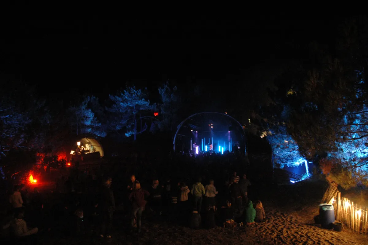 Onderweg naar de subliem gelegen Vuurboetsduin krijg je een aardige indruk wat de eilanders (vier festivaldagen) voor de kiezen krijgen: mensen fietsen dwars door het bos, dolen in het donker door de duinen. Halverwege tussen het Sportveld en de vuurtoren spot je meerdere licht- en geluidsbronnen: niet het Bos/buitenpodium, dat dit jaar akoestisch gespaard wordt, maar wel Of Monsters And Men op het hoofdpodium en de eerste tonen van Marbert Rocel op het nieuwe duinpodium. We volgen de meest dwingende groove en stuiten op een apart Duits viertal.