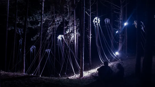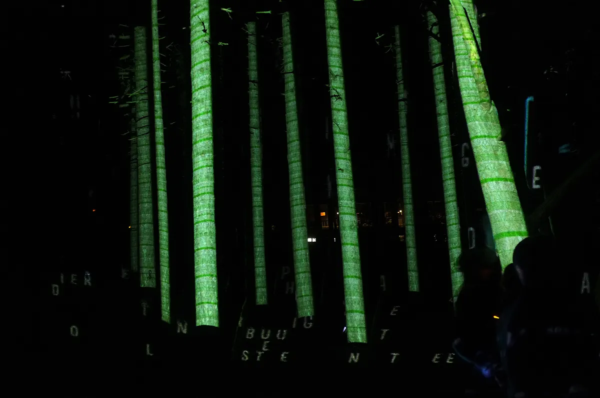 Indrukwekkend is 'Be a light' van het kunstenaarscollectief Het Blauwe Uur. Programmeur Carolien Euser wist zich aanvankelijk geen raad met het project maar stemde uiteindelijk toch toe. Daarvoor hebben ze een gigantische interactieve lichtinstallatie aangebracht in het bos. Door op knopjes te drukken of aan touwtjes te trekken veranderen de patronen van het licht. Letters, vormen en kleuren glijden door het landschap. ,,Echt space", volgens Dijkman.