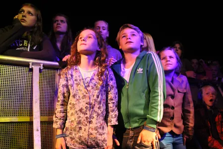 Een groep jongens van een jaar of twaalf maakt plannen: "Wesley, ga jij crowdsurfen?" "Nou, dat gaat niet zo makkelijk als op tv. Dan klim je gewoon op het podium en laat je je vallen." Het is niet eens baldadigheid, het pure enthousiasme, maar bij de IJslandse band Of Monsters And Men is zoiets opwindends niet gepast, zeker niet bij Your Bones, een gedragen folkballade met trompet en dik aangezette drums.