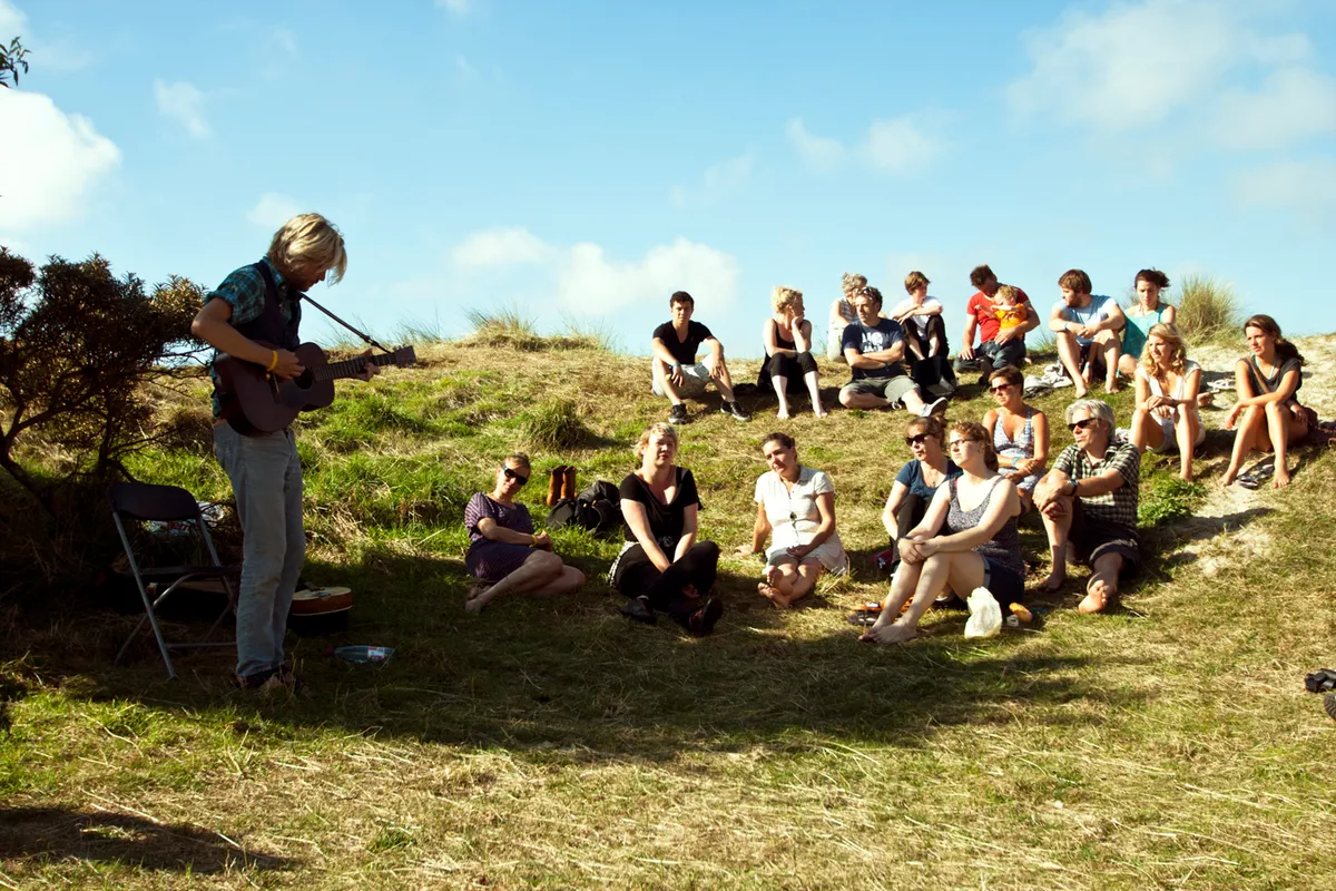 Maar er is ook muziek! Ter afsluiting van de tocht van de vroege vogels en als start van de tocht voor de brakke vogels is er het Early Bird Concert. Djurre de Haan, beter bekend als Awkward I, speelt tussen de duinen in een natuurlijk gevormde arena zeven wonderschone liedjes. Hij begint met een cover van Smog, Rock Bottom Riser. Hij speelt ook eigen werk, waaronder Angelica Tells Me en The Unknown Character.