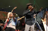 Verwachten al die, toch voornamelijk blanke mensen, die er totaal niet uitzien als hiphoppubliek, dan een Typhoon-achtige show? Dat kunnen ze krijgen. Met vergelijkbare diepgang, humor, charme, presentatie en uitstekende band: ritmesectie, toetsen, calypso gitaar, harp, viool en rap plus croonende backing vocals. Het materiaal is alleen wat minder feestelijk. Dat werkt dus verrassend goed. En inderdaad: 'wat een mooie dingen heeft Vermeulen geschreven': "Als ik dood ga, huil maar niet ik ben niet echt dood. Dood ben ik pas, als jij me bent vergeten." De bebontmutste gitarist Gerson heeft ook een knap gedicht met lach en snik in petto en dan is het opeens klaar. De band is wat laat begonnen en voor slotnummer Dit Is Een Wedstrijd resteert nog een haastige a capella toegift. Het album verkeert na drie jaar werken volgens Akwasi in de laatste fase. Hij wilde dat per se onafhankelijk doen (op het eigen label Neerlands Doop) en staat nu voor de uitdaging om op 10-10 dat album echt af te leveren. Dit heeft namelijk alles in zich om een live-sensatie te worden en een van de hoogtepunten van de komende Noorderslag. (Ingmar Griffioen)