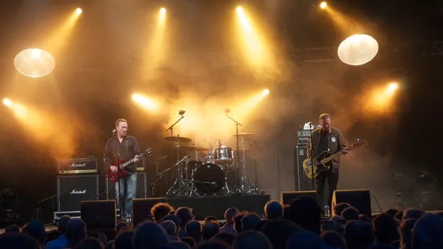 Druk is het niet bij het Sportveld, maar de aanwezige eind-dertigers en veertigers zijn overduidelijk bekend met het oeuvre van Buffalo Tom. Dat leert ook een snelle blik op Twitter, waar het sentiment je om de oren vliegt als je zoekt op Buffalo Tom en de hashtag #gwo14. De band heeft er zelf overduidelijk lol in en houden geregeld vrolijke praatjes over een zeemonster dat ze hier in ‘de oceaan’ hebben gezien (“Is there a Vlieland monster?”), het afgelopen WK en kinderen in een reuzenrad waar 'Sangria' op staat, een eindje van het hoofdpodium af. Daar wordt nauwelijks op gereageerd, maar dat deert ze totaal niet.