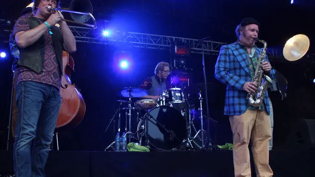 Inderdaad. Geen probleem, want we kwamen voor een feestje en dat zullen we krijgen ook. Gooi dat springerige ritme en die hoempablazers er maar in en dan gaan we los. Daarvoor treffen ze op Vlieland een gespreid bedje. "Zijn jullie een beetje opgewarmd?", wil Chajes weten. "Dit nummer geeft je dat gevoel, dan kun je alleen nog maar loslaten." Vodka gaat er inderdaad uitstekend in. Weer met stemmige zang van Alec en die manische trekzak. "Great Wide Open", scandeert de frontman en oh ja: wij ook. En nog een keer en nog een keer.