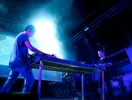 Op het moment dat de stevige technobeat van Surf Solar erin komt, is echt iedereen bij het Fortweg-podium om. De track bevat zowaar een four-on-the-floor beat om de menigte aan het dansen te krijgen. Typisch iets voor Fuck Buttons die hun hang naar experiment nooit zo ver doorvoeren dat het ten koste gaat van het effect op het publiek. Het kost geen enkele moeite je voor te stellen dat een atleet in slow motion de finish bereikt terwijl Surf Solar doordreunt. Met bovendien een heftig stroboscoopeffect op elke andere tel, wat hier heel goed werkt. Sowieso zijn die visuals te gek: continu zien we vervreemdende silhouetten van de twee afgebeeld op het scherm achter hen.