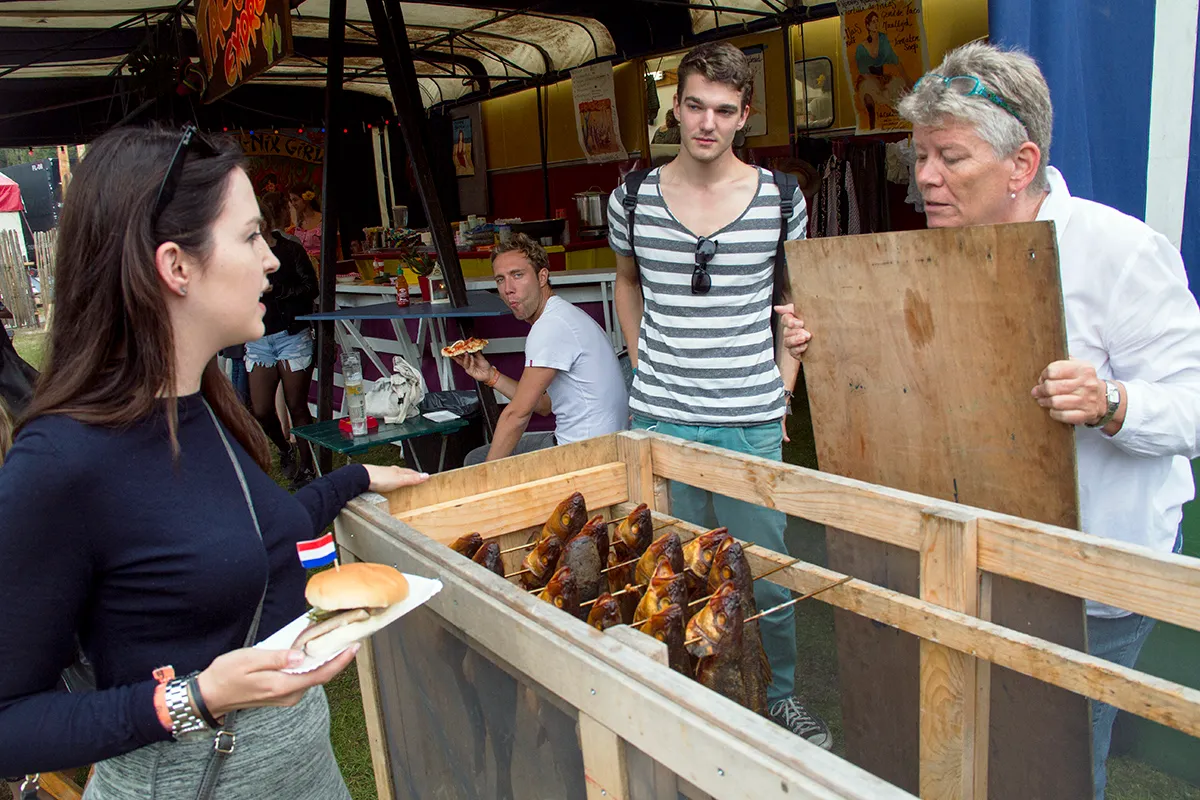 Welke gerechten zijn dan zoal de moeite waard? Als je smaak van de exotische variant is raadt Van Loon de fattoush-salade van Amaro aan, recht tegenover de toren op het Sportveld. Dit Libanese gerecht, met zorg bereid met echte granaatappelpitjes, duurt even om te maken, maar is zeker de moeite waard. Blijven je smaakpapillen toch liever dichtbij huis, dan is de viskraam van de Vlielandse Jutter meer geschikt. Lokaler kan het namelijk niet: de vis wordt direct vanuit de Noordzee naar de rookoven op het terrein gebracht. Mocht een hele vis te veel zijn, zijn er ook gewoon broodjes met zoute haring te krijgen.
