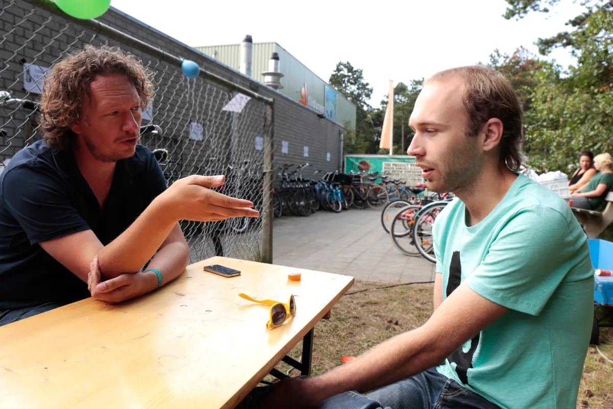 Het is zondagmiddag als we aanschuiven aan de picknicktafel die is omgedoopt tot redactietafel van Lab Vlieland. In de zon, naast het productiekantoor, ontmoeten we programma- en documentairemaker Misja Pekel van HUMAN en informaticastudent Jan van Kampen. Lab Vlieland is ontstaan onder invloed van ITGWO en nodigt studenten en vooruitstrevende producenten uit om oplossingsgericht bezig te gaan met de vaak alledaagse problemen waar het festival mee te maken heeft.