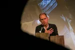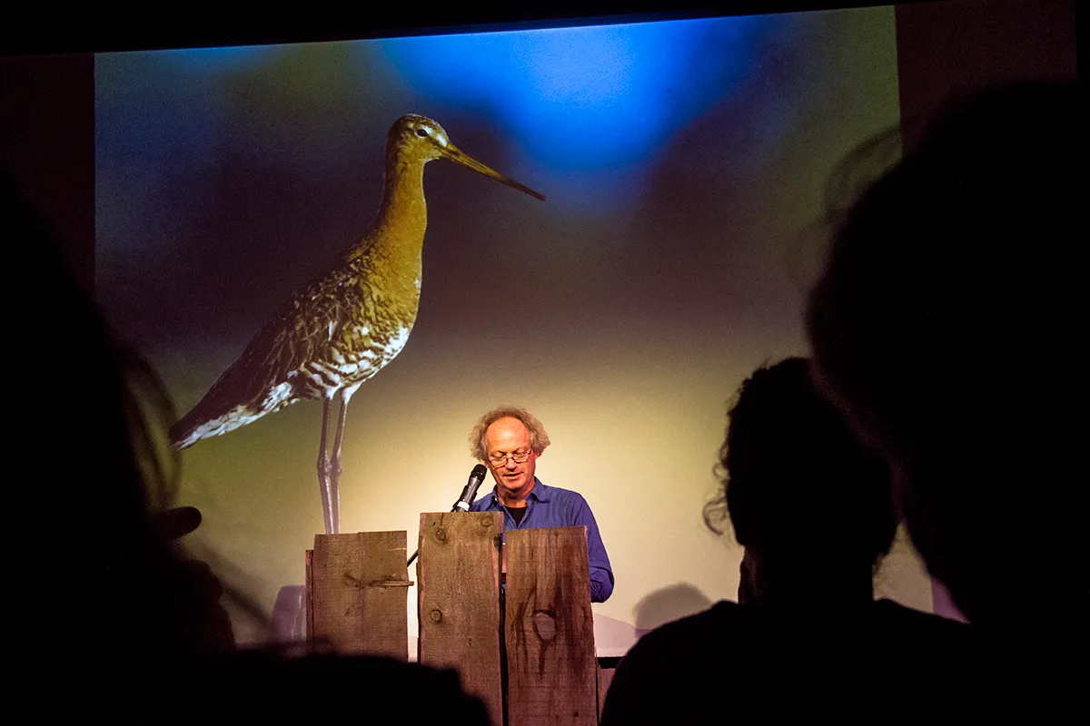 Tijd voor het gebed. Alhoewel, gebed, gebed… Ecoloog Theunis Piersma vertelt eigenlijk gewoon een verhaaltje over de grutto. Hij weet nog wel een kleine link met het thema te maken waarin het weidevogeltje als metafoor voor de teloorgang van traditionele waarden door productie verhogende progressie, maar laten we eerlijk zijn: dit is eigenlijk een klein college ornithologie, waar niemand echt op zit te wachten. De echt herkenbare distopische aspecten van de huidige samenleving komen terug in Shawn Buckles’ pamflet aan de wereldbevolking. De kunstenaar, die hier op ITGWO al een zebrapad de zee in maakte en eerder dit jaar al zijn privégegevens verkocht aan de hoogste bieder, roept nog het meest concreet op tot actie. Hij is het zat dat niemand nog strijdt voor zijn recht op privacy, en oplossingen alleen maar worden gezocht in technologie in plaats van bij de bron van het probleem. Niet alleen stof tot nadenken dus, maar echt een call to action.
