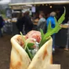 Zebs, tegenover het hoofdpodium op het Sportveld verkoopt Italiaans warm plat brood met verschillende soorten vulling. Ik kies voor de variant met varkensvlees en die is overheerlijk. Het lauwwarme, subtiel vette varkensvlees is een aangename mix met de saus en de rucola. Je hebt er geen volwaardige maaltijd aan, maar als middagsnack is dit niet te versmaden. De hoofdgerechten op de menukaart zien er ook veelbelovend uit. Locatie: Sportveld Munten: 2 Cijfer: 8 (Willem van Zeeland)