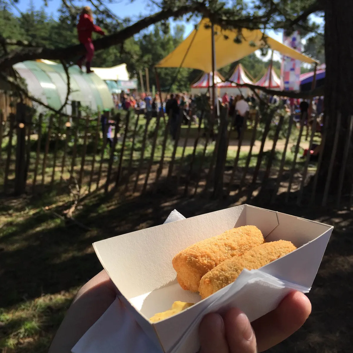 Recht tegenover het hoofdpodium, niet ver van de bekende Dutch Weed Burger (die kun je op elk festival vinden), zit Marius’ Zeewierkroketten. Dat klinkt in elk geval bijzonder, en de verwachtingen als ze uit de frituur rollen zijn dan ook hooggespannen. Het is maar een tussendoortje: twee kleine kroketjes (voor twee munten) met ragout waar inderdaad wat zeewier in is verwerkt. Helaas proef je die maar nauwelijks, vooral door de overmatige mosterd die erop gekwakt is. Prima te eten hoor, maar niet heel speciaal. Volgende keer toch maar de eierballen inschepen; dat is pas een authentiek noordelijke snack. Locatie: Sportveld Munten: 2 Cijfer: 6 (Sjoerd Huismans)