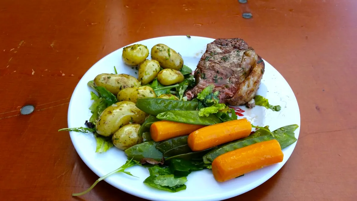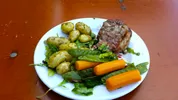 Cultkok Amaro is dit jaar ook present op Into The Great Wide Open. Niet dat we hem zo snel in de keuken spotten, maar een eettent op het Sportveld draagt zijn naam. Minpuntje alvast voor de dame achter de balie die niet helemaal duidelijk maakt waar je moet zijn voor welk gerecht, maar soit. De lap vlees maakt heel veel goed. Helaas niet gebakken op lava, wel op een barbecue waar je wat stukjes houtskool van meekrijgt als de wind goed staat en je mond open. 'Royaal' is het woord wat te binnenschiet: de entrecote is flink, de aardappeltjes in ruime mate voorradig en ik durf te wedden dat geen enkel gerecht hieronder zoveel groenten biedt. De entrecote is perfect gebakken en heerlijk sappig. Een saus erbij serveren zou een gotspe zijn. En zowaar: de vetrand is geen stukkie lillend vlees, maar een wezenlijk onderdeel van een bord vol, waar je met gemak de hele nacht op kan teren. Locatie: Sportveld Munten: 5 Cijfer: 8,5 (BvD)