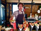 Appeltaart is nou niet per se festivalvoer bij uitstek: zo'n punt op een bordje eet toch wat onhandig. Daar heeft Public Pie iets op gevonden: het deeg is gevormd tot een bakje voor de appelvulling. Eten waar je maar een hand voor nodig hebt, daar zijn we fan van. Proberen dus. Midden op het Sportveld staat het schattige gebakskraampje. We rekenen 1,5 munt af, en krijgen zonder extra kosten een flinke kwak vers geklopte slagroom. Dat is al een groot pluspunt. Het deeg is knapperig en smaakt naar vanille, een beetje als een zandkoekje. De stukjes appel die erin zitten hebben nog best een bite en smaken nog fris. Wie houdt van een meer doorgekookte, moesachtige vulling komt hier niet aan z'n trekken, maar wij vinden het wel lekker en het geeft minder geknoei. Ook bespeuren we een flinterdun laagje van waarschijnlijk abrikozenjam bovenop – een goeie tip voor uw appeltaarten thuis! En dan de grootste troef: er zitten geen rozijnen in. Want die horen niet in appeltaart. Punt. Locatie: Sportveld Munten: 1,5 Cijfer: 8. (Cécile van Wijnsberge)