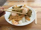 Man, wat hebben we ons op Lowlands stuk gebeten op het Aziatische eten. Ordinaire nasi, taaie loempia's, en het allerergste: slappe curry. Op Great Wide Open betaal je voor dat laatste net wat meer (5,5 munten is niet mis), maar dan is je eten tenminste op smaak, met sappige garnalen en flinke reepjes verse bamboe. Locatie: Sportveld Munten:5,5 Cijfer:8 (Atze de Vrieze)