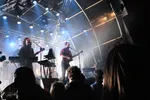 Vier nieuwe nummers op een set van een uur, da's best gedurfd. En dan komen ze ook nog eens allemaal achter elkaar. Toch wordt het publiek niet al te zeer op de proef gesteld: de nieuwe tracks passen allemaal prima binnen die herkenbare De Staat-sound. De eerste is 'Round', een nummer gebouwd rond een kale, uptempo bas-en-drumbasis met een zich herhalend gitaarmelodietje dat bijna licht te noemen is. Dat motiefje vindt onder de toeschouwers al wat aansluiting en zelfs een aantal meezingers. Tweede track 'Help Yourself' is er eentje uit dezelfde categorie als 'Sweatshop': minimalistisch, met zware bas en een industriële feel. 'If you wanna stay ahead you gotta help yourself', spuugt Florim in sarcastisch parlando. Dan volgt 'When We Will Murder Death', en voor het laatst heeft De Staat het gekst bewaard. De titel 'Kermis Song' dekt precies de lading. Een razende speedrocktrack is het, waarbij Florim flink gek mag gaan op z'n theremin.