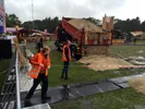 Arnout de la Houssaye, hoofd productie vertelt dat door de regen de bodemlaag tussen de tien en vijftien centimeter is verzadigd. De oplossing: tachtig kuub zand. En wat is het grote voordeel van een festival op een eiland? Je haalt het zand van het strand. De la Houssaye: "Normaal gesproken moet je een half jaar van tevoren aanvragen doen bij allerlei instanties om zand te mogen verplaatsen. Dat hoeft nu niet, de bereidheid is groot onder iedereen."