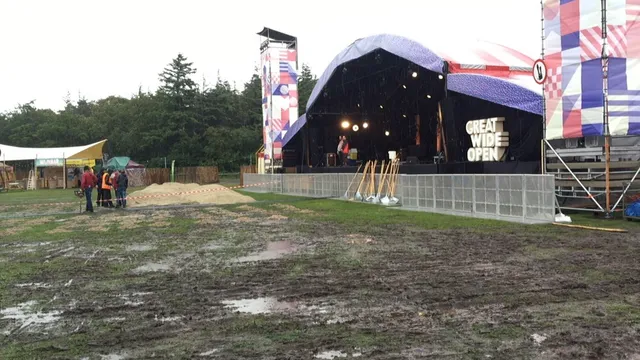 De buien komen voor De la Houssaye niet als een verrassing, maar je er precies op voorbereiden, is volgens hem niet mogelijk. "Dat hangt volledig af van hoe het terrein er uiteindelijk bij komt te staan en daar spelen we op in." Maar wat als er door nieuwe regenbuien het terrein weer een modderpoel wordt? "Dan gaan we weer zand storten en onderbreken daarvoor desnoods het programma. De veiligheid van onze bezoekers staat op één."