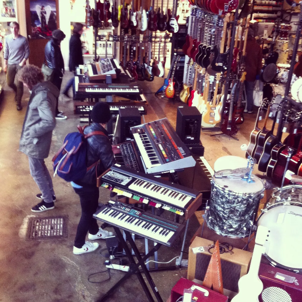 Voor we de Williamsburg Bridge over joggen en vervolgens dronken raken op een middaguur in The Great Jones Bar, bezoeken we een voor de freaks epische winkel voor muziekinstrumenten. Jasper bespringt direct een Jupiter-8, Jacco bemint de vioolbas en Keez doet 't op een klassiek Slingerland bassdrumpedaal. Ik vermaak mij meer met de discografie van -toepasselijk - de Bad Brains die opstaat. Toen nog energie voor 100 na het ontbijt dat we hadden in een klassieke diner, zoals in die ene film. Geen haar op ons hoofd die dacht aan de dag van morgen.