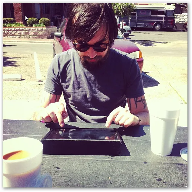 "Hey man, what's cooking?!" "Coffee and doughnuts, dude." - We zijn weer veel te vroeg vertrokken. En dat is fijn. Een goed ontbijt in de ochtendzon van filterkoffie en sigaretten. Austin heeft een kater maar staat op tijd op om als publiek te fungeren in de Jacco Gardner show op het BrooklynVegan feestje in Emo's Jr.