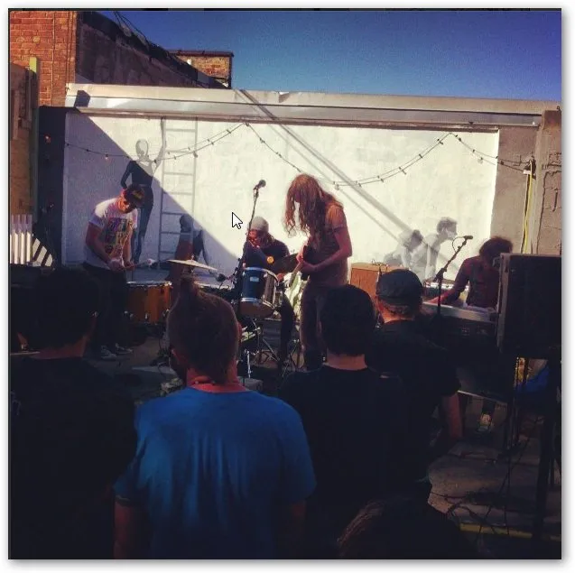 We spelen op het heetste podium van Austin. Zongebakken beton om ons heen. Het publiek staat goed in de schaduw die de bomen geven in de tuin van Barabarella club. "Austin is sweating music. Like, from every orifice drips music in this town." vertelt iemand me. Bij mij lijkt het vocht op een zwart Bat-signal in mijn grijze shirt.