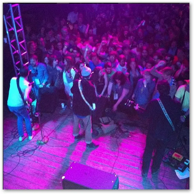 We spelen vandaag drie keer. Na een rustige ochtend in de voortuin komen we alsnog veel te vroeg voor onze show in de Parish. We vallen op met onze New Yorkse nummerbord. Weinig mensen (en bands) komen vanuit het "verre" noorden deze kant op gereden. Het was het meer dan waard. - Te vroeg ter plaatse dus. Een zeer strakke band speelt onder het balkon waar wij zitten en opbouwen. Er word een groot feestje gebouwd op de plek waar wij zo spelen. Het kan ons amper nog interesseren. Wij zijn met ons hoofd in een computer gedoken. Het is de tour. Een gebrek aan energie om van een fijne band te genieten. Jacco zit op de grond, achter zijn keyboards. Koptelefoon op. Google op de MacBook, altijd op zoek naar de beste vorm van zijn instrument.