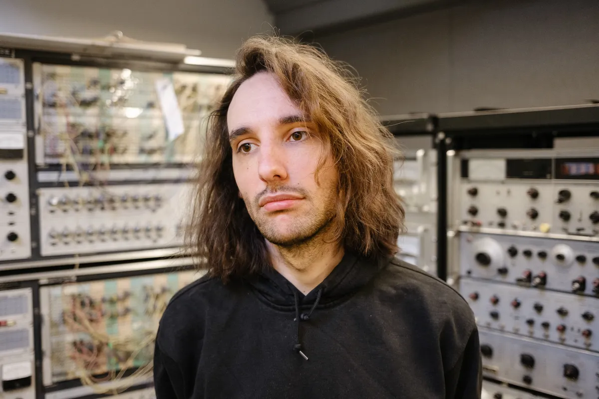 ‘Hmmmmm….. Hoe werkt deze fantastische machine?’ Mitchel van Dinther (30) alias Jameszoo staat wat te hannesen met het koffieautomaat, heeft zelfs hulp nodig om hem aan de praat te krijgen. Komisch, een kwartier eerder oreert hij nog uitgebreid over apparatuur waar vuistdikke, taaie gebruikshandleidingen bij geleverd worden. Hier, wijst–ie, een analoge computer uit de jaren zestig, een bakbeest zo groot als een koelkast waar je verschillende patchboards in kunt hangen. Je kan er wiskundige berekeningen mee uitvoeren, máár als je de snoertjes in de goede gaatjes steekt, komt er ook geluid uit. Psshhhhhshhhhhshhhhhghghghgh. Brrrraprrraprrrrraprrrrap. Fiieeeeeet. Daar een stel oscillatoren waarmee types als Dick Raaijmakers en Stockhausen in de fifties experimenteerden. Het zijn de spullen die verantwoordelijk waren voor de geboorte van de elektronische muziek, vertelt Van Dinther, maar eigenlijk helemaal niet bedoeld waren om muziek mee te maken. Hij lacht. ‘Ja, deze dingen komen bij het ESA vandaan, geloof ik, de European Space Agency.’