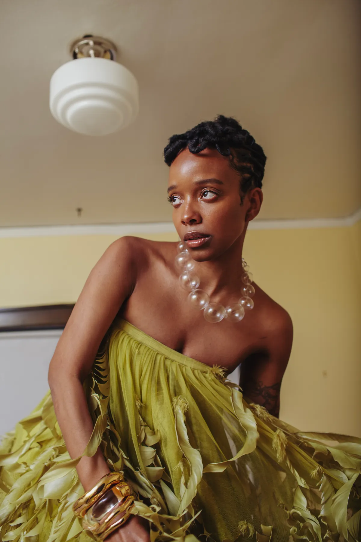Met poëtische, introspectieve teksten graaft Woods op Water Made Us in haar eigen herinneringen aan gestrande relaties en het effect dat de relaties van haar ouders en grootouders nog altijd op haar hebben. Dit doet ze allemaal in een eigenzinnige, spirituele mengelmoes van pop, soul, r&b en folk waarin ze haar voorbeelden Erykah Badu en Imogen Heap verenigt. In gesprek blijkt Woods net zo warm, bedachtzaam en intelligent te zijn als in haar muziek. Ze denkt goed na over de manier waarop ze haar gevoelens in woorden wil brengen. Wanneer haar eigen woorden tekort schieten, citeert ze Zwarte schrijvers als Sonia Sanchez en James Baldwin, of verwijst ze naar haar geboortehoroscoop of tarotkaarten. Woods is het type dat je een stevige knuffel geeft wanneer je weggaat, je vraagt om goed op jezelf te passen en zichzelf een echte caretaker noemt. ‘Ik ben een weegschaal, maar de vrouwen in mijn familie leven áltijd langer dan de mannen en zorgen dus lange tijd veel voor anderen. Dat zorgzame zit dus van nature in mij.’
